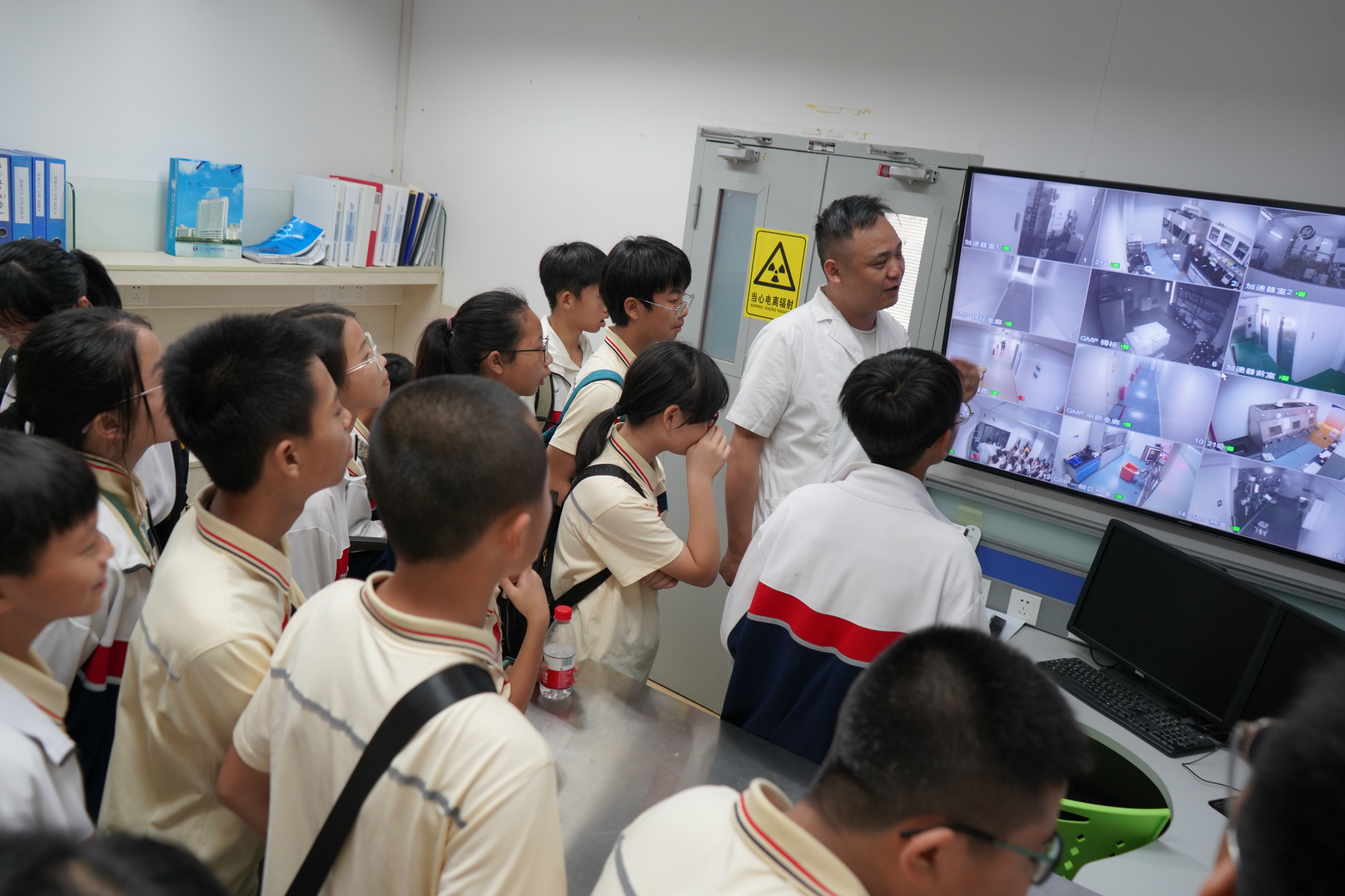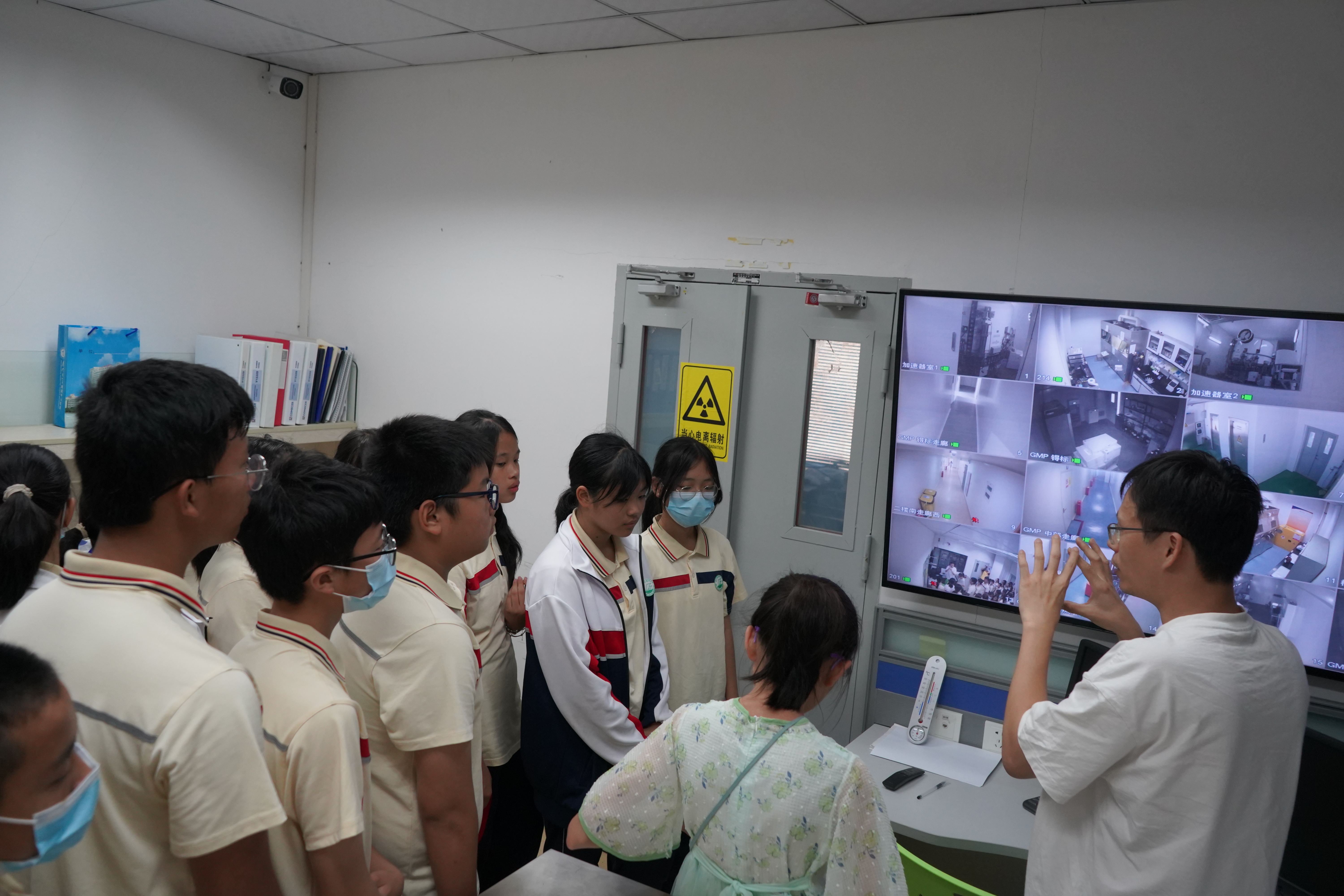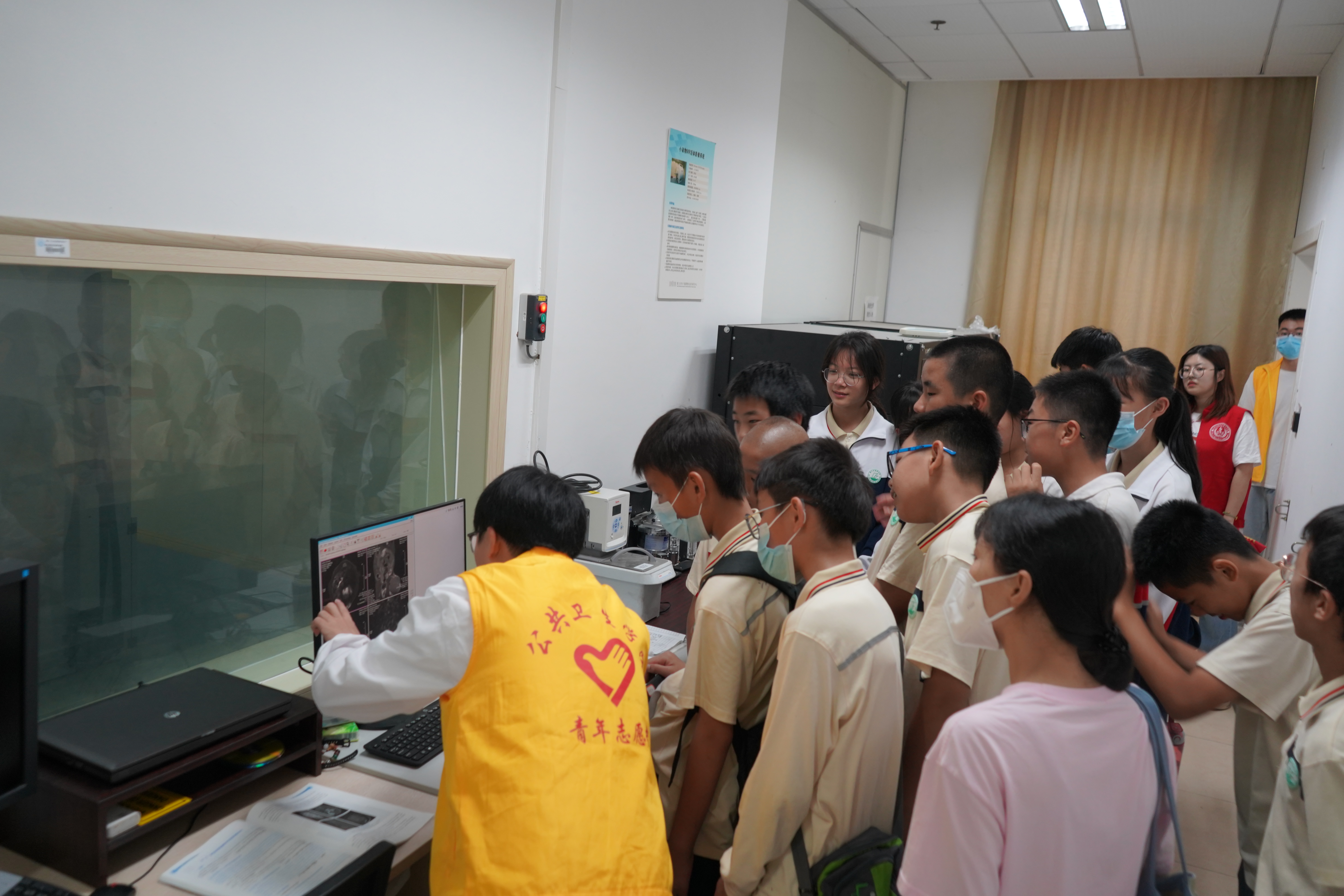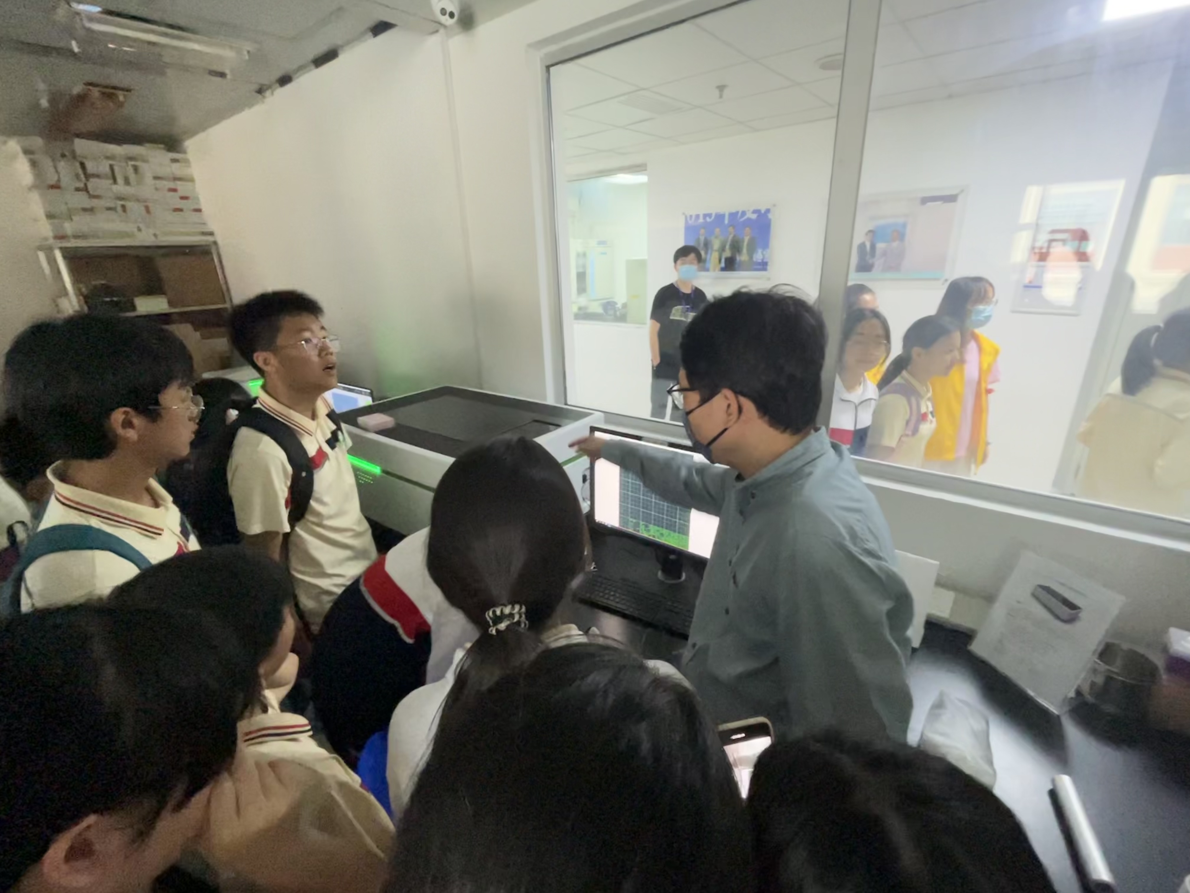 在分子影像中心楼,首先来到了医用回旋加速器室,讲解员向同学们介绍了加速器的原理和功能,解答他们关于粒子物理和核物质的疑问。在光学实验室和共聚焦显微镜室,讲解员向同学们介绍了共聚焦显微镜的工作原理,并展示了一些精密的显微镜设备,让同学们通过显微镜观察到了微小的细胞结构和微生物。随后参观了小动物PET/CT、SPECT/CT实验室、光声实验室、小动物核磁共振实验室等,同学们切身体会到了医学影像技术在疾病诊疗中的重要性。