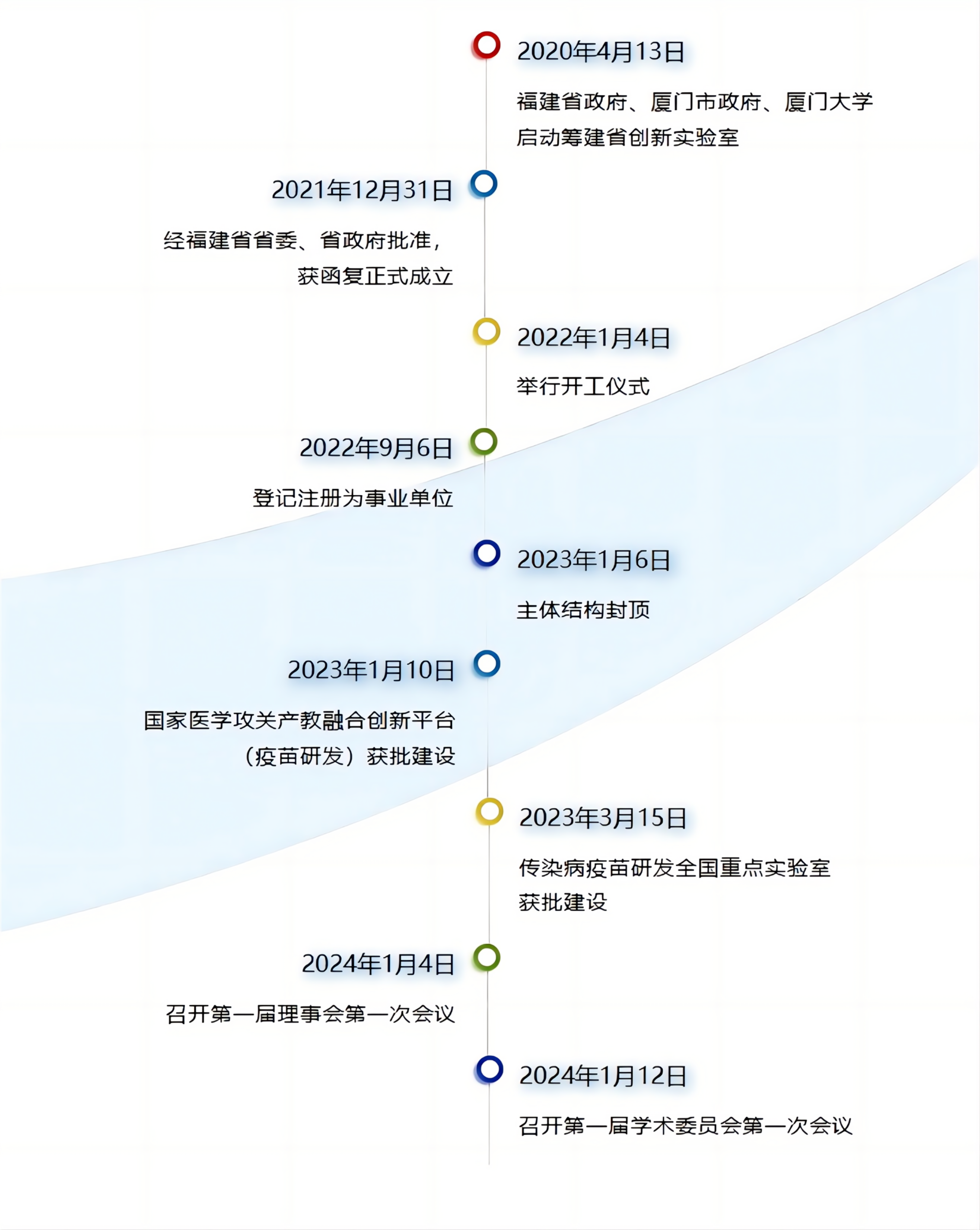 实验室依托厦门大学医学和生命科学学科建设。实验室创始团队在疫苗和诊断试剂的基础研究和应用领域深耕多年,已牵头研制出全球首个戊肝疫苗、首个国产HPV疫苗、全球首个鼻喷流感病毒载体新冠疫苗、全球首个艾滋尿液抗体自检试剂、全球首个新冠总抗体检测试剂、全球首个戊型肝炎病毒抗原尿液检测试剂盒等原创产品。研发的疫苗产品已累计获得国家新药文号/紧急使用授权3项、WHO PQ认证1项,诊断试剂产品获批注册证100余项、WHO PQ/EUL认证3项。